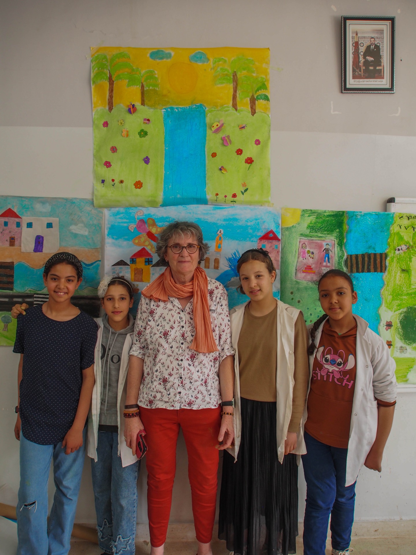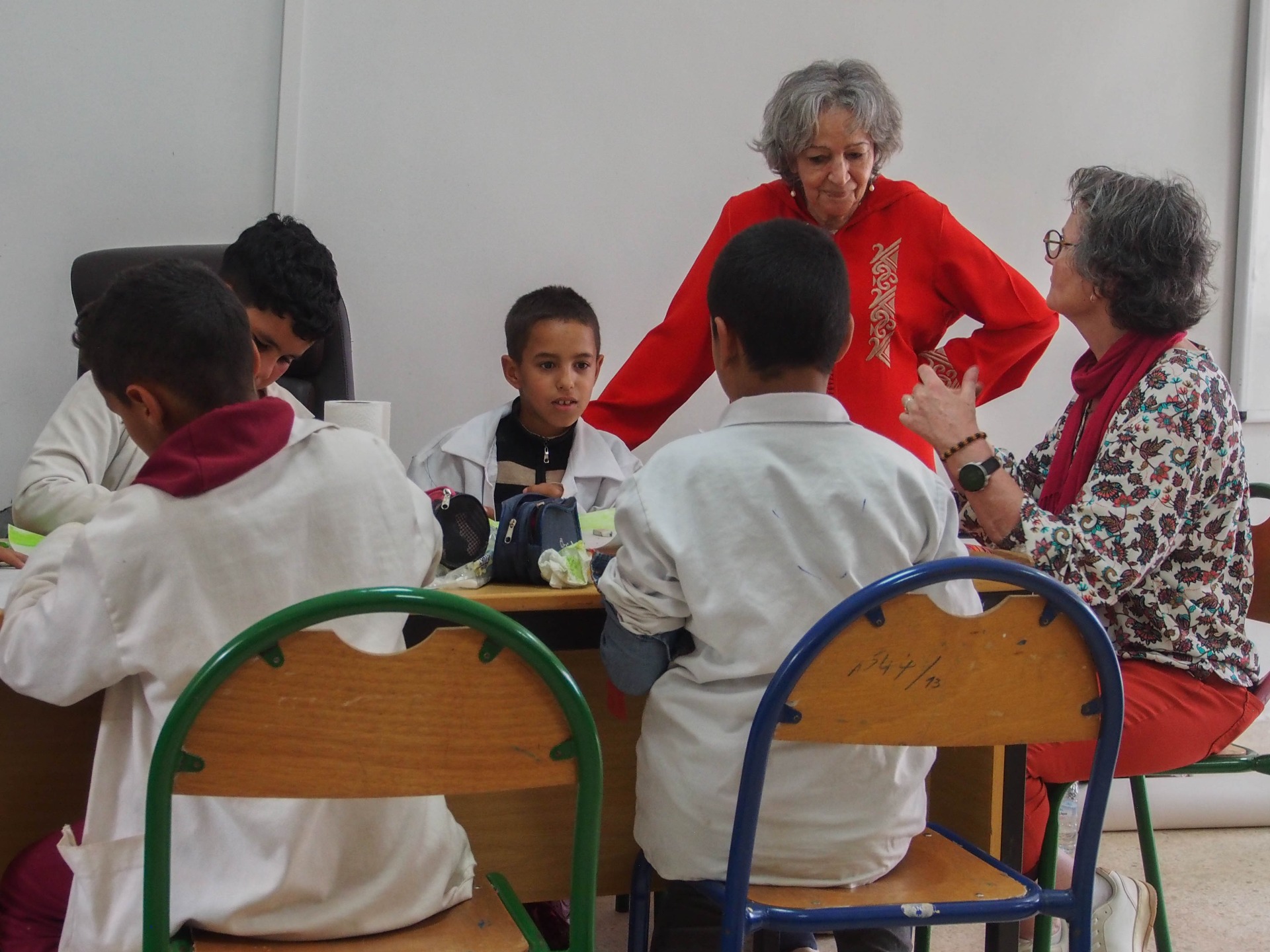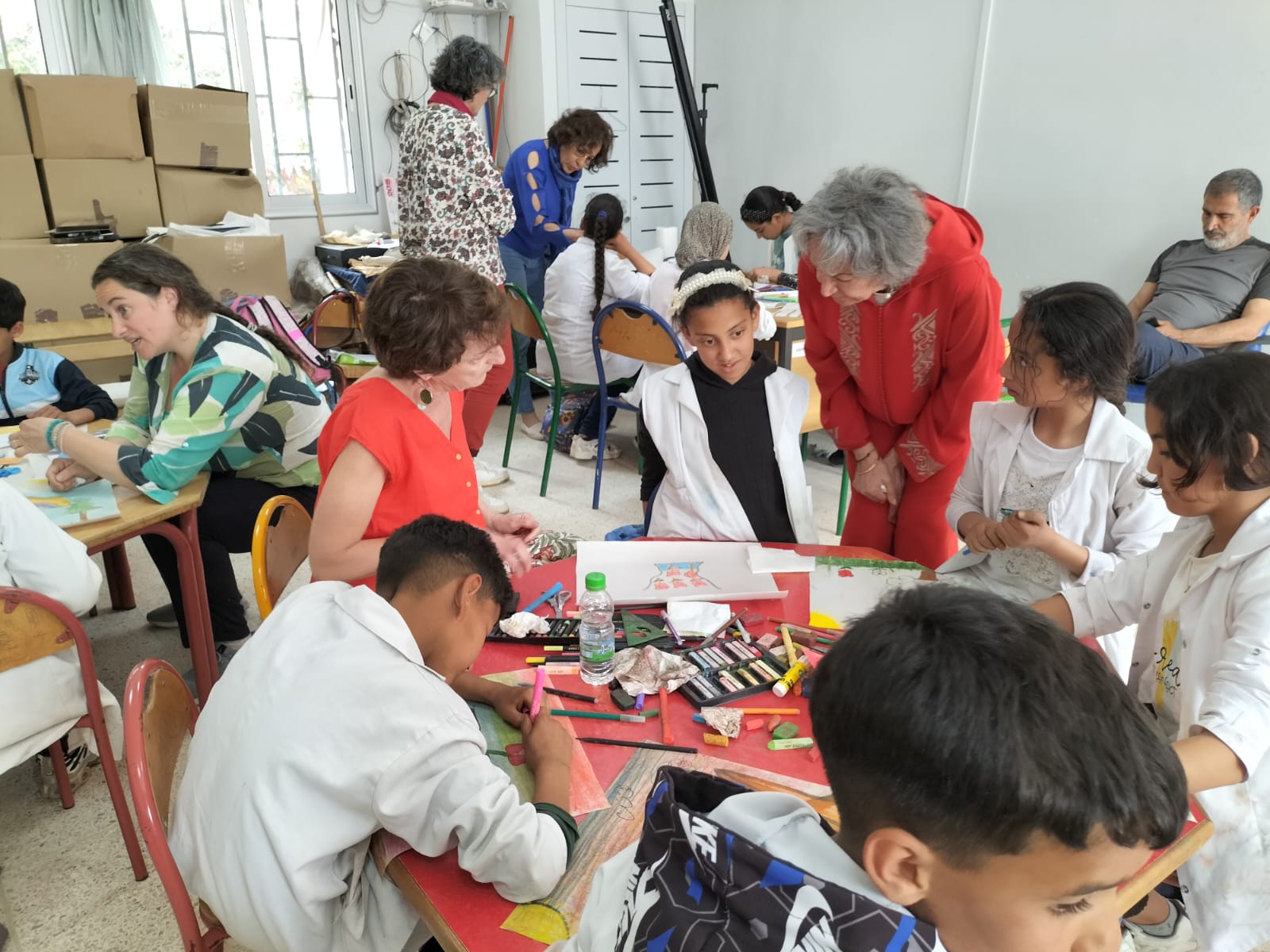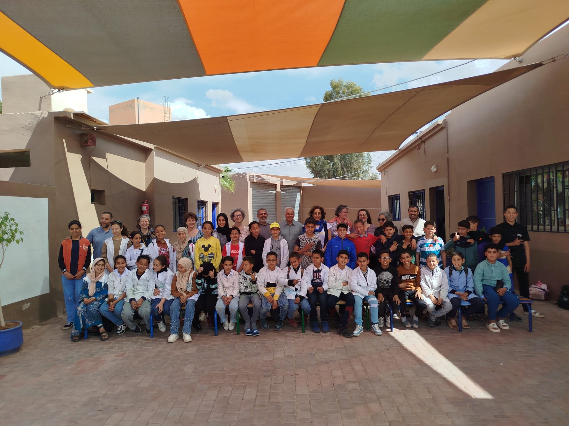 UNE EQUIPE DE PARTAGER-GRANDIR AU MAROC En avril dernier, sept membres de l'association se sont rendus à Marrakech et ont offert des ateliers d'art-thérapie co-créative à une quarantaine d'enfants fréquentant l'école Shib de Tameslothe.
