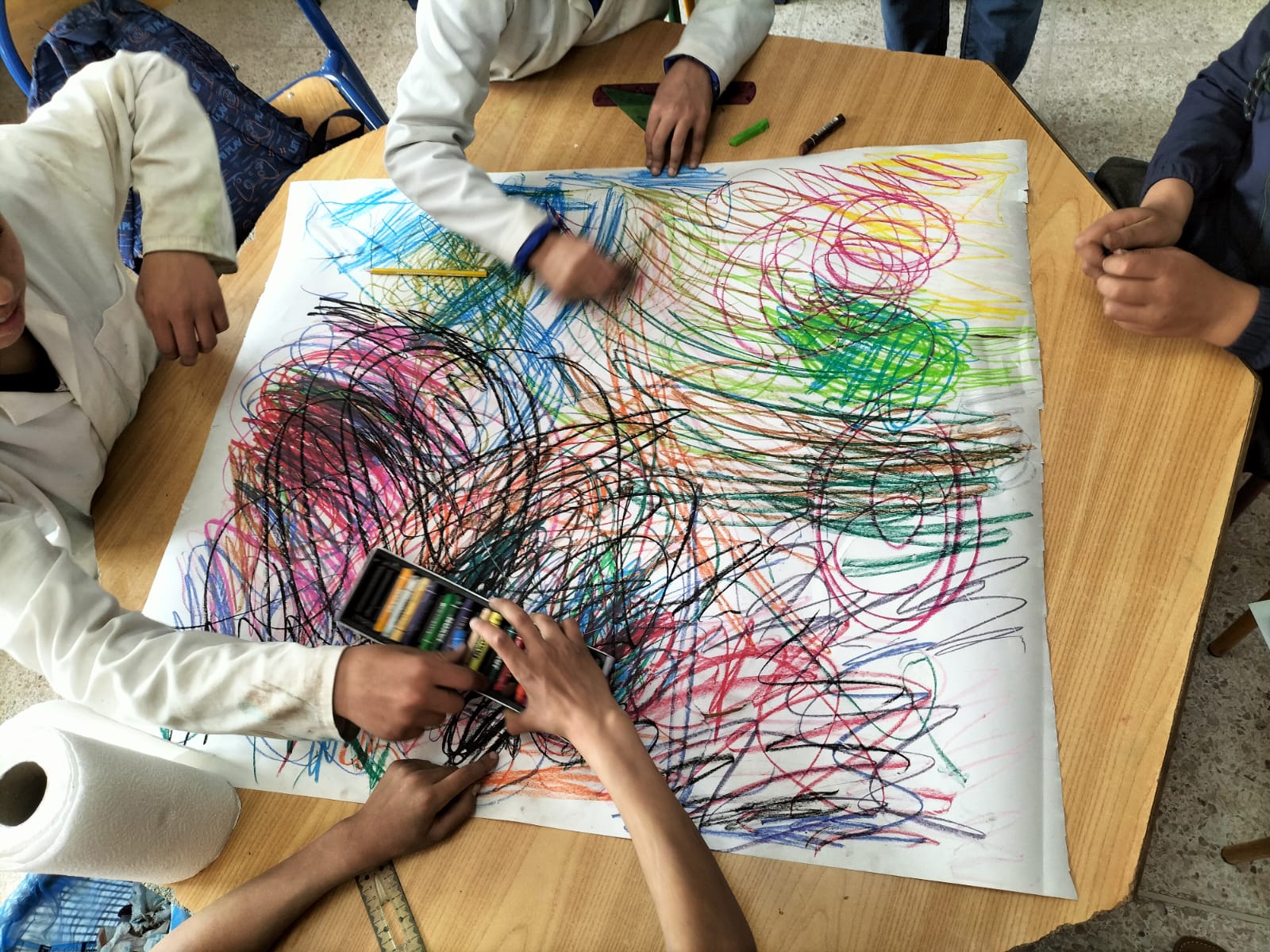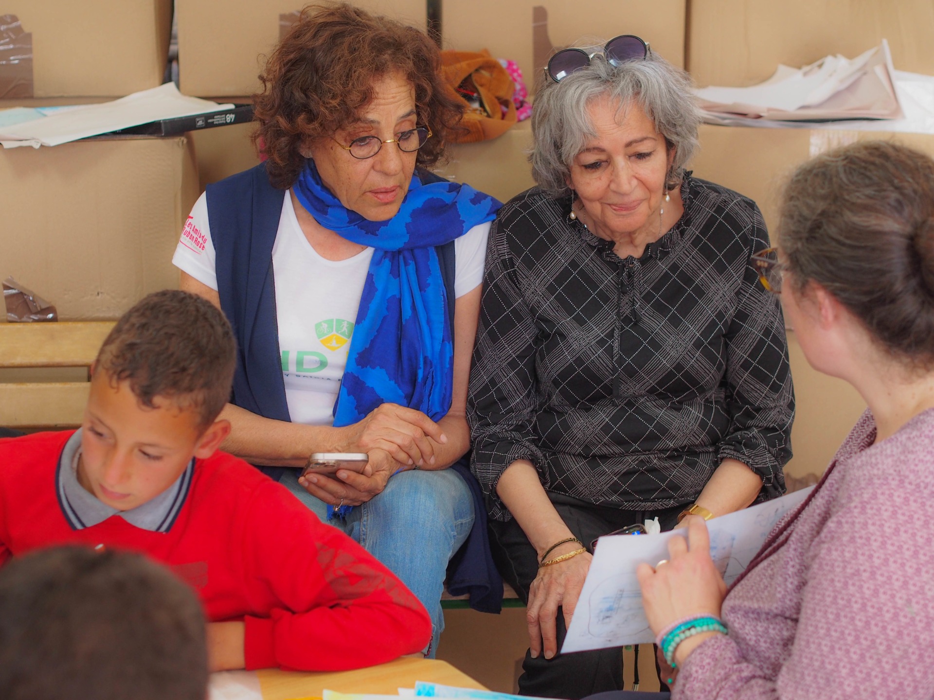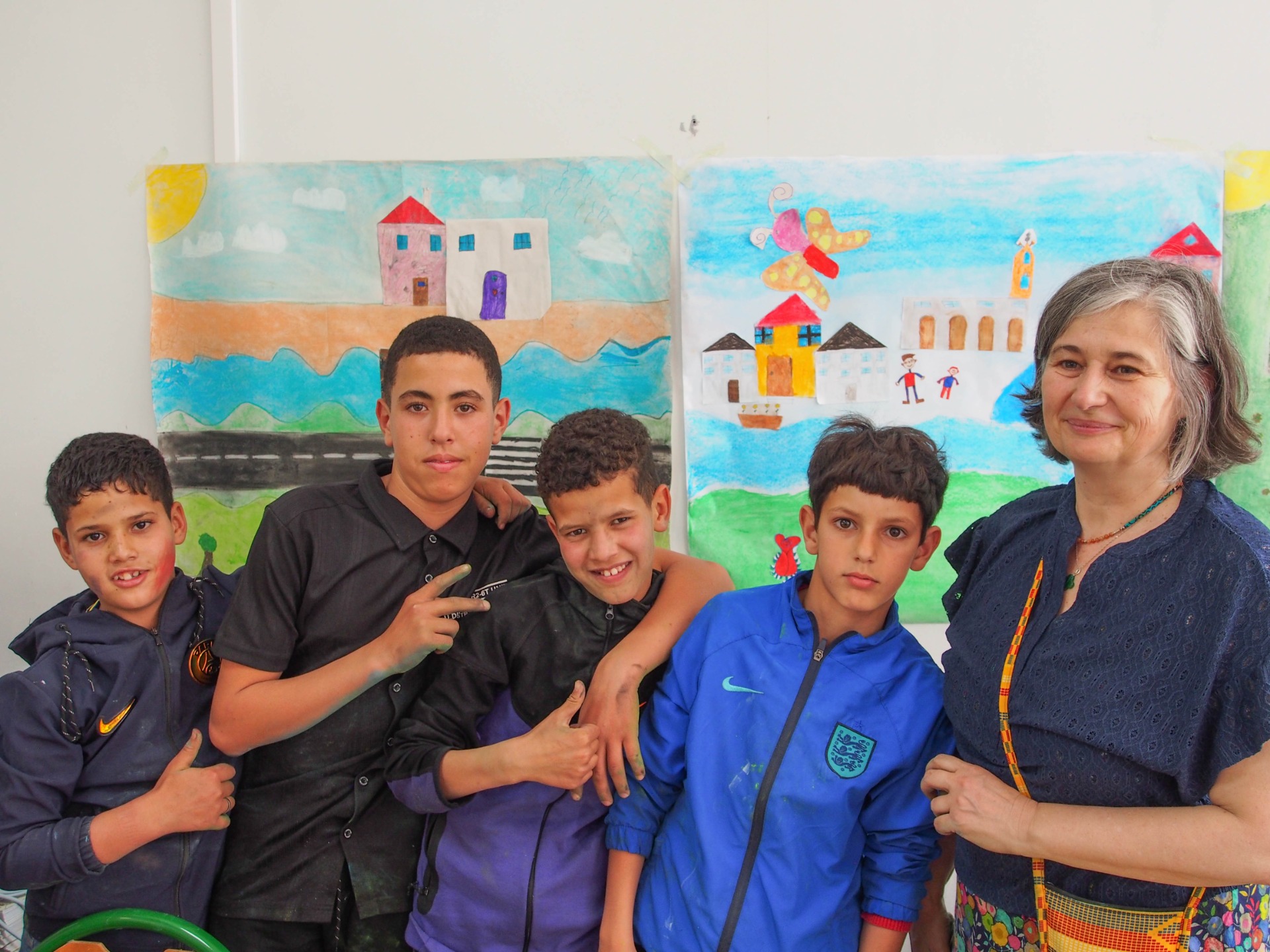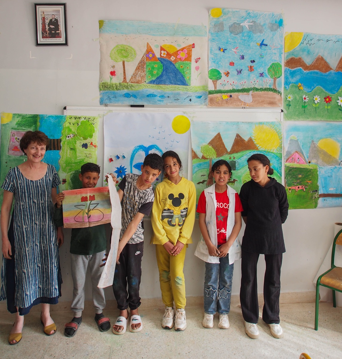 UNE EQUIPE DE PARTAGER-GRANDIR AU MAROC En avril dernier, sept membres de l'association se sont rendus à Marrakech et ont offert des ateliers d'art-thérapie co-créative à une quarantaine d'enfants fréquentant l'école Shib de Tameslothe.