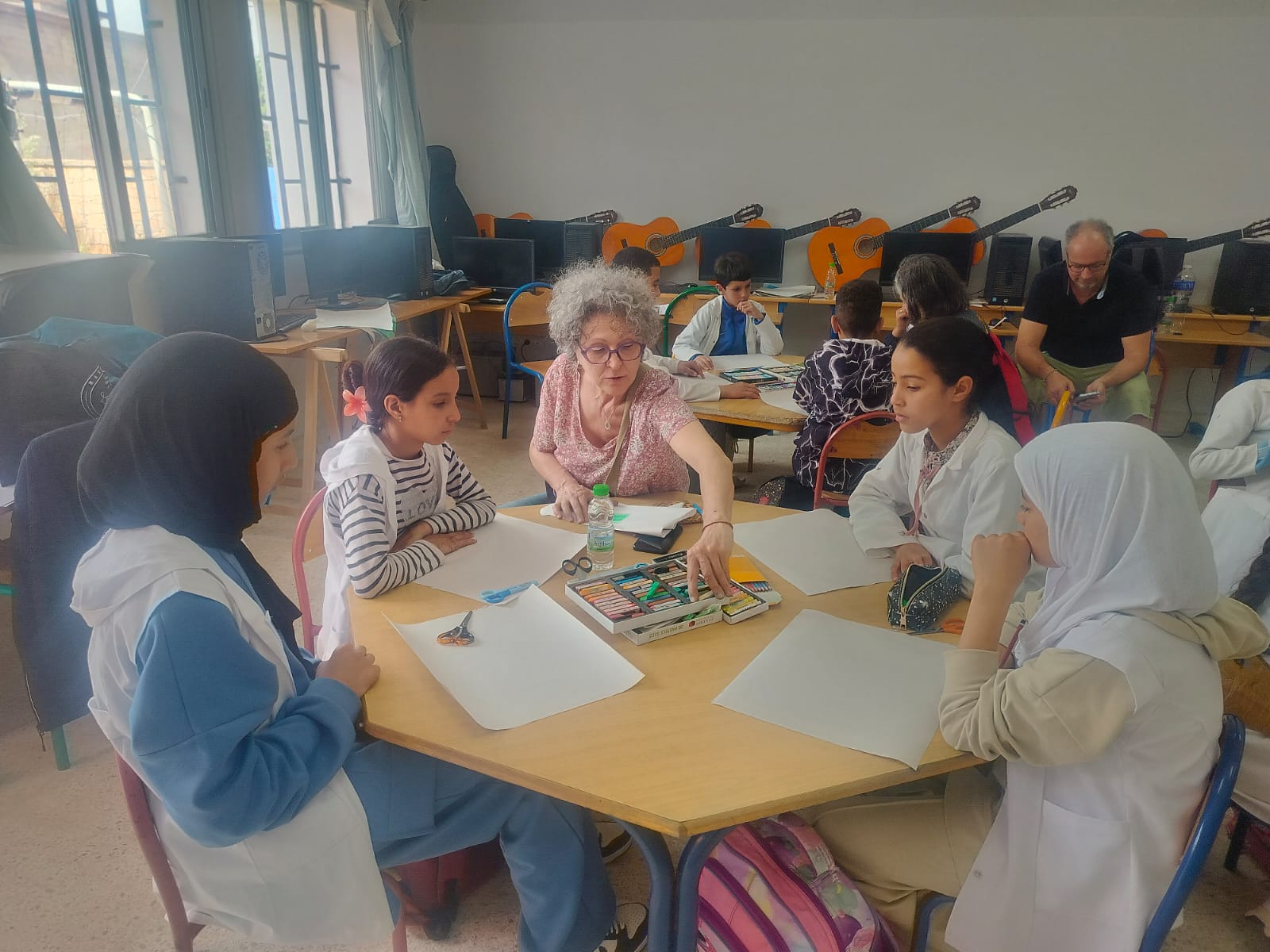 En plus de ces très bonnes conditions matérielles, nous avons été très bien reçu.e.s par Monsieur Mohamed Kaab, le directeur de l'école depuis 24 ans, et son équipe d'enseignants, tous très attentionnés. Nous gardons en mémoire les excellents thés à la menthe accompagnés de spécialités locales au moment de la pause entre deux ateliers !
